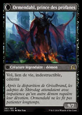 5, T, sacrifice five creatures: transform and untap Ormendahl, Profane Prince.